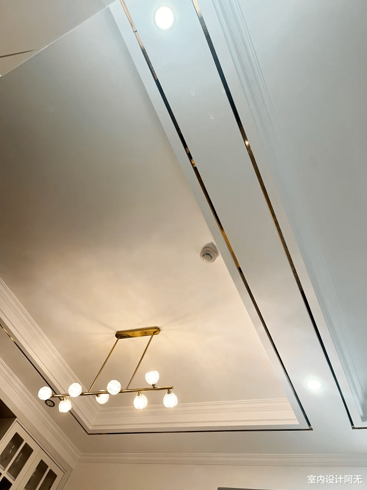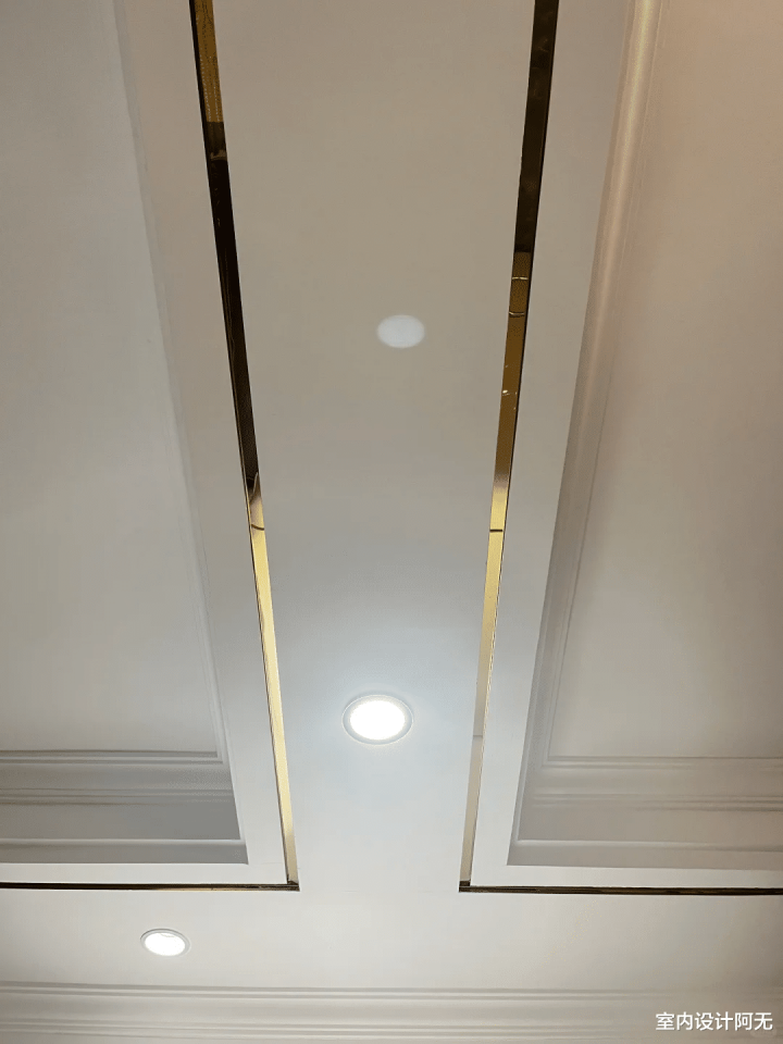 网友@小蜜蜂 的分享:吊顶上的钛金条真的越看越丑,和家里的氛围真的越来越格格不入,真的想把它们拆下来,但是一直不知道怎么弄,以后装修真的不能做这东西了,过一阵给这些钛金条刷个漆试试。